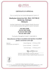 We at Medicplas Industries are proud that we have come this far from our humble beginnings to where we are today. We have achieved this through hard work, commitment, integrity and loyalty. We are proud to display our achievements and commitments reinforced within our corporation.